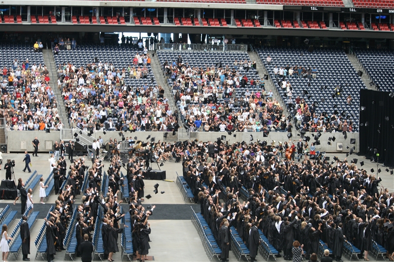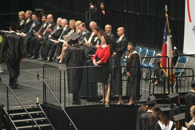 June 5, 2010 The actual graduation day! Here is what it looked like! She got up early to fix her hair and then carpooled down to the Reliant Stadium with several other classmates to stand in the tunnels for her hair to fall! Her school rotates with the other 3 high schools each year and this year we got the 9 am time. I guesss that was a good thing! All I know is if your child graduates in a class of almost 800 you are lucky to get any photos at all. I couldn’t find her anywhere in the procession. Then it dawned on me…her last name starts with a “T”!! (Just how many U,V,W,X,Y and Z’s can there be?) So, who am I kidding…she will really be at the end! And sure enough she was. She practically missed the entire procession! (We filmed it sweetie!)