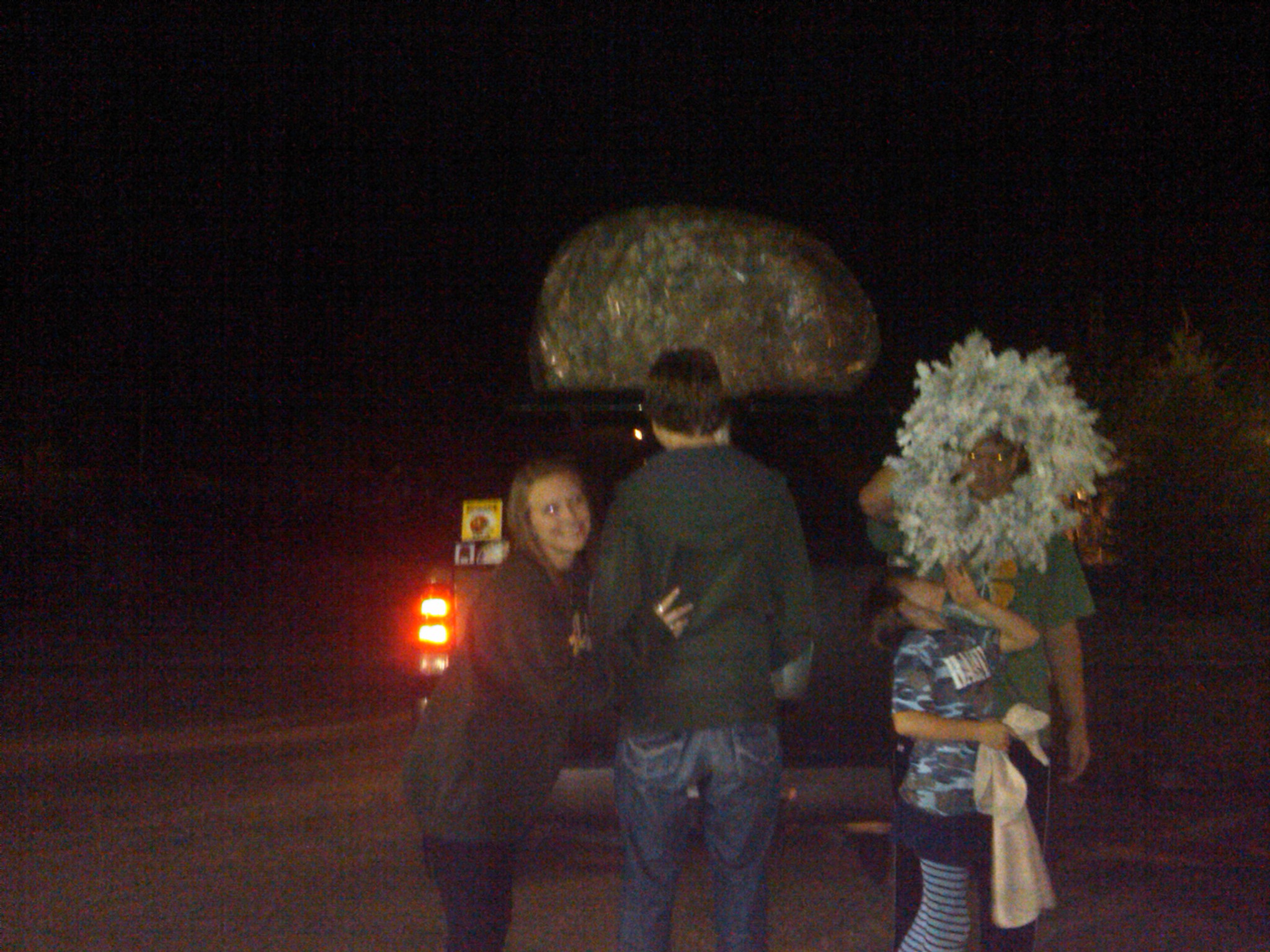 We were told by tiff that we couldn’t put up the tree without her so we waited. And waited. Finally she made it home a day late due to apartment looking for next year and cleaning up the cracker box dorm room hiding extension cords to avoid fines. Even though we have a perfectly fine “prelit that lost its lit tree” from Alaska Christmases…no one wanted to climb in the attic and bring her down! So we headed to the first place open on a weeknight after 8. And we saw it…a beautifully flocked tree. We’ve never had a flocked tree and I’m thinking if it doesn’t get decorated it already is. It had its own stand and doesn’t need watering! The perfect solution for this tree neglectful family!