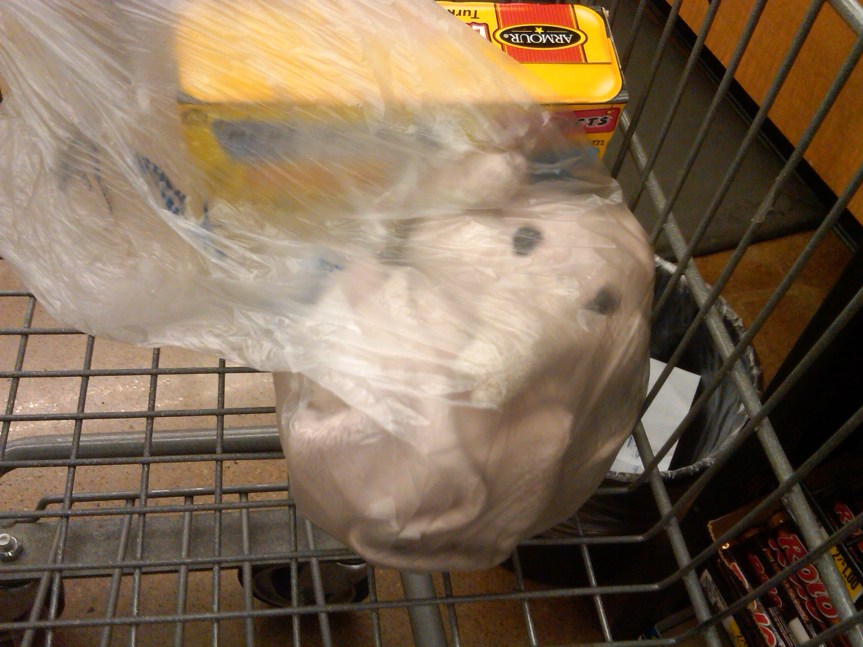 Caleigh and I went to Kroger and she got sidetracked playing with the produce sack and Ellie ended up on the floor. I was distracted but heard a mom telling her son to pick it up that someone would be looking for her for sure. Of course I rescued her from their clutches and she questioned me like…so, it belongs to you? My response as the woman sized up me and my 7 year old was “Unfortunately, Yes. I know she is seven but she still carries her around.” I don’t know just how she gets away with it because I cannot tell you how many times I tell her Ellie has to stay home. We almost lost her again! So when I looked down in the buggy at the checkout this just made me smile. Ellie got to experience life inside a produce bag! I could probably have an entire blog of just blankie stories. For now I am practicing blogging on the iPad. For the record I’m not a touch screen person. Oh to have an actual return carriage!