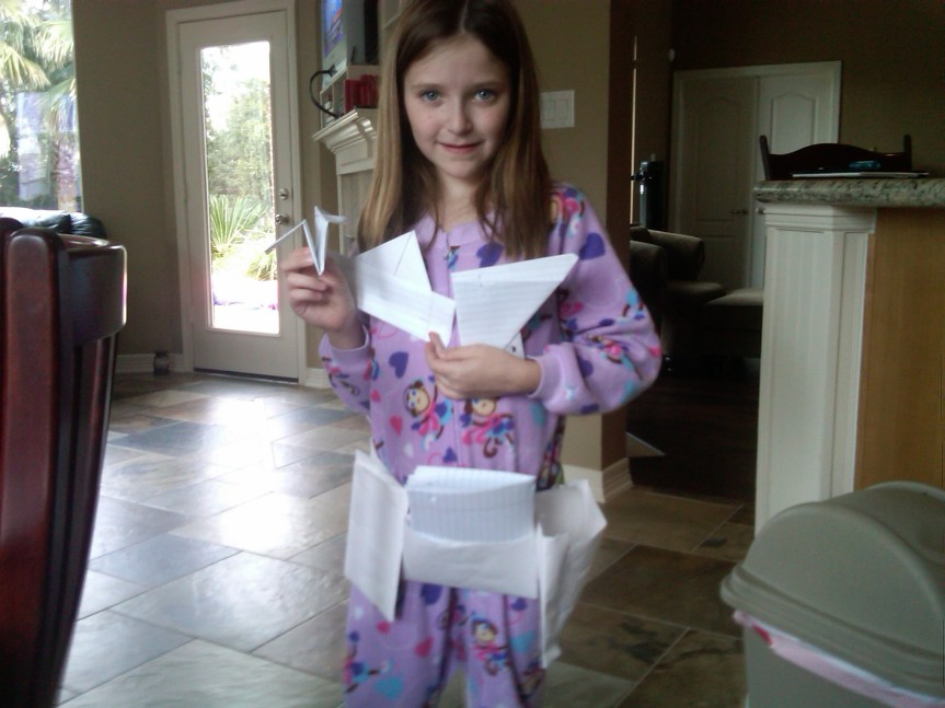 On her snow day off I mean ice day Caleigh hopped up to what she calls her office aka the boys computer homework niche and made this belt. She calls it “Helpers”…and it has pockets with things to do all day in each pocket. Cause she can make lots of things in paper. And even has a pocket for money in case she sells some of the toys she makes. All I know is we were in the middle of our second game of go fish and she felt the need to go up and create a helpers belt:)