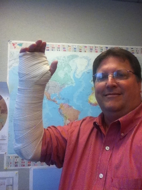 He says he’s through! He is done playing basketball! Yep, this man was brought down yet again this time by his youngest son, 15 year old Kevin. He went down on Friday. It was a pick up game of one-on-one and Kevin took him 11-4. But not without great effort on Keith’s part. Like the last time a couple of years ago when he fell on our sinking driveway and fractured his elbow, he hopped back up and finished his game. Walked around in denial, I mean pain, before seeing a doctor. Today is Monday. Let’s see the parallels here. Fell. Bounced back Up. Finished the game. Waited to go in. I think after seeing it last night get red and swollen kind of helped. If you are still with me the funny part is yet to come! So, he is at the doctor. They put him in the cast. Sent him out the door. He is right handed. And his right wrist is what is fractured. I totally blame the nurse here, but they sent him out into the parking lot, and he said he stood there looking at his car not being able to even get into it. His keys were in his right pocket. He kept looking around and only was seeing women coming out of the office. Even though it was tempting to flag one down and ask a complete strange lady to reach in his pocket to get his keys….having just recently also recovered from shingles I’m gonna go out there and say his next call would have been from jail!!! So this man had a plan…shimmy the pants around until the right pocket was center and the left hand could retrieve the keys! Now me? I would have already been calling! I tagged this one in the category of “it’s what we do” but clearly that is a “he” “we”…but a most hilarious one at that!!!!