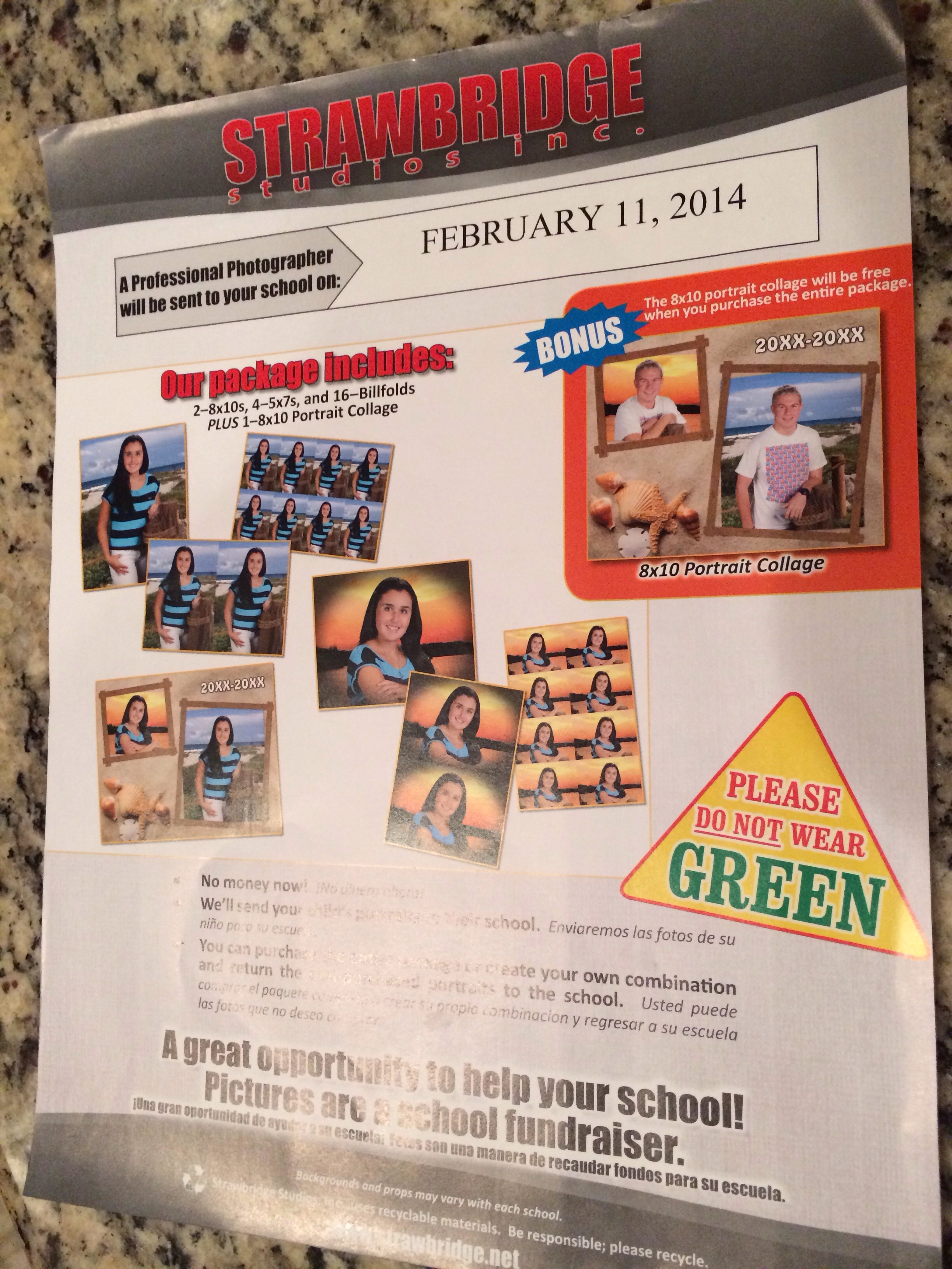 When I saw this I roared with laughter! Roared! The Strawbridge flyer has posted on its page in bold yellow signage: “Please, Do Not Wear Green!” Kevin is gonna think I really have the power. Like just what extremes will mom go to to keep the green shirt out of the photo!?!