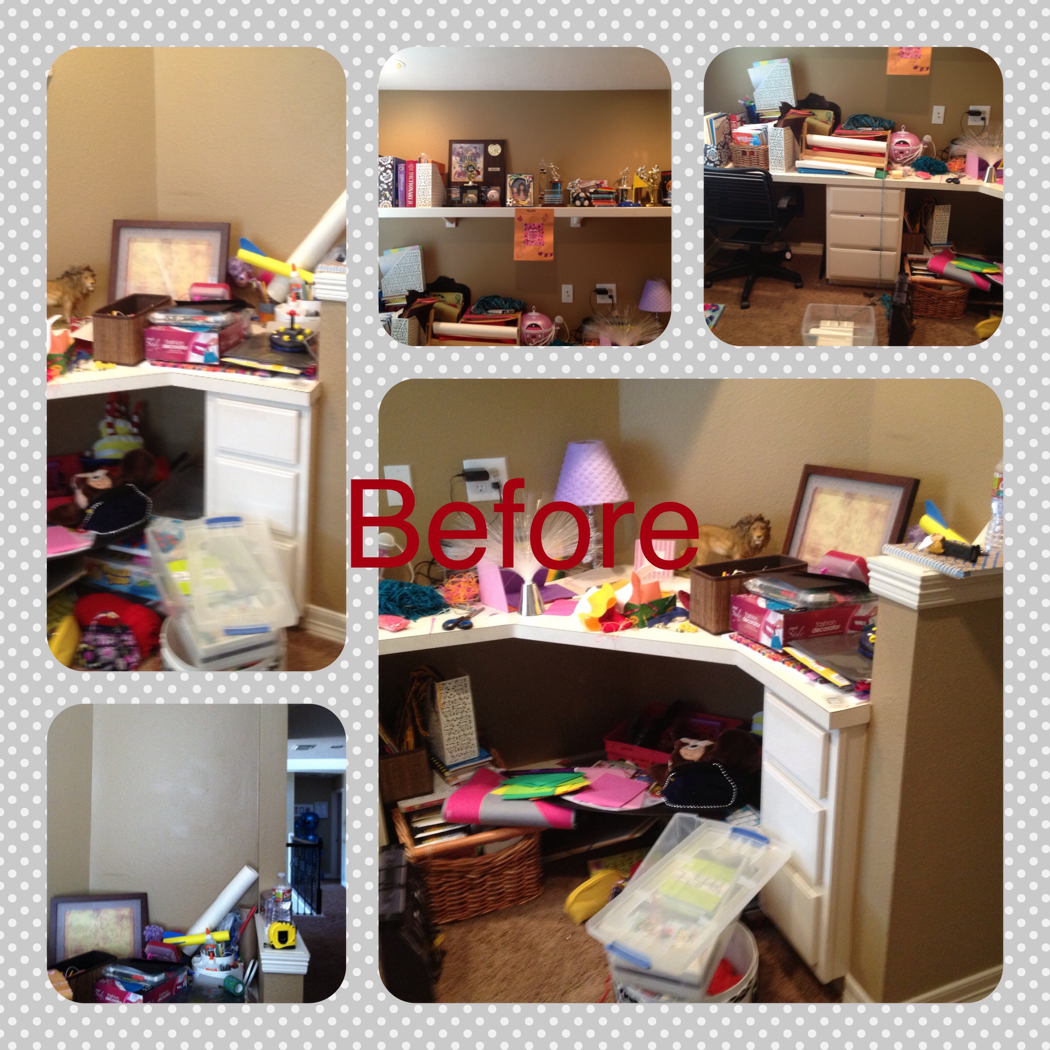 Caleigh has taken over the study area outside of the boys rooms since we can remember. She calls it her office. It has always been her happy place but I wouldn’t say it was a happy space in the sense of the word. Let me see if I can find a before picture!